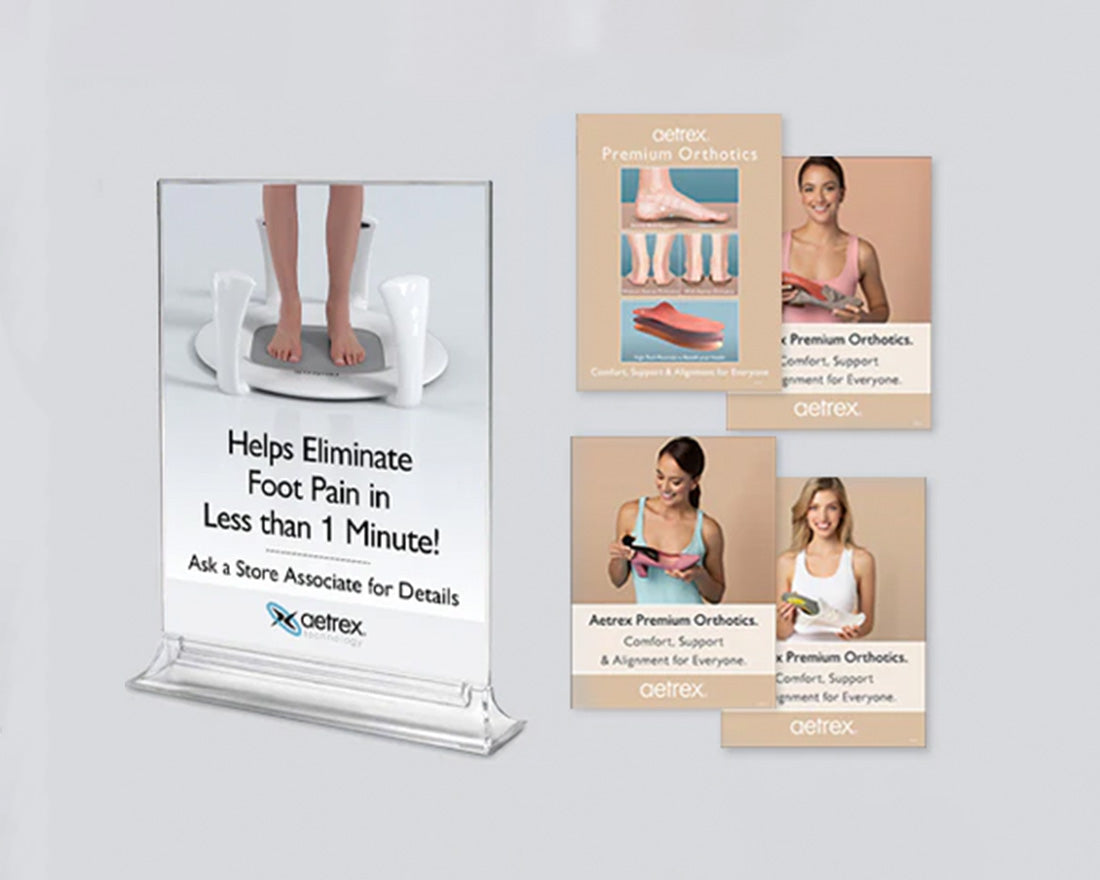 This 8.5" x 11" sign holder set is perfect for displaying Aetrex brand messaging and product details. Ideal for tabletop presentations throughout the store, it comes with Plexi Frame Inserts for added versatility.